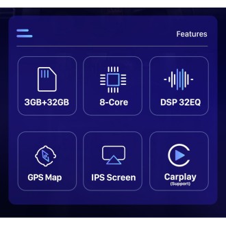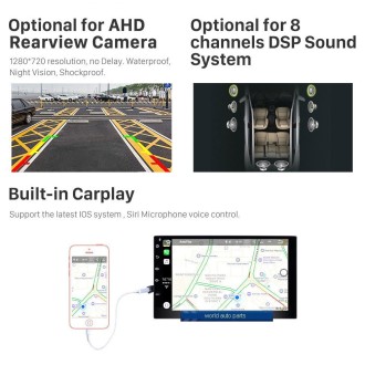 GPS, Stéréo, HANDSFREE, Amplificateur, Image dans l'image, Built-in Microphone, Écran partagé, Gestionnaire de fichiers, Volant de voiture de Contrôle
