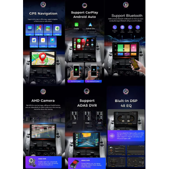 GPS, Stéréo, HANDSFREE, Amplificateur, Carplay, Image dans l'image, Built-in Microphone, Écran partagé, Gestionnaire de fichiers, Volant de voiture de Contrôle
