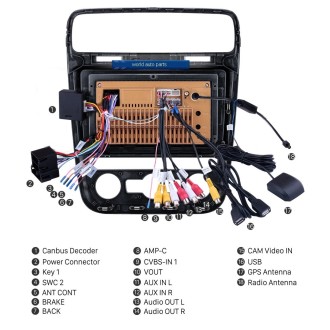 GPS, Stéréo, HANDSFREE, Amplificateur, DSP, Carplay, Android auto, Image dans l'image, Built-in Microphone, Écran partagé, Gestionnaire de fichiers, Volant de voiture de Contrôle